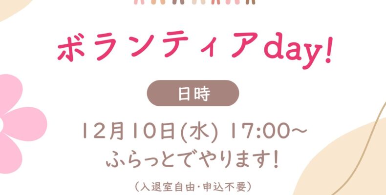 【イベント情報】12月のボランティアday! 2025年12月5日Category: イベント情報 あっという間に年末ですね!!2025年最後のボランティアdayです!今月の内容はカレンダーでリサイク… read more