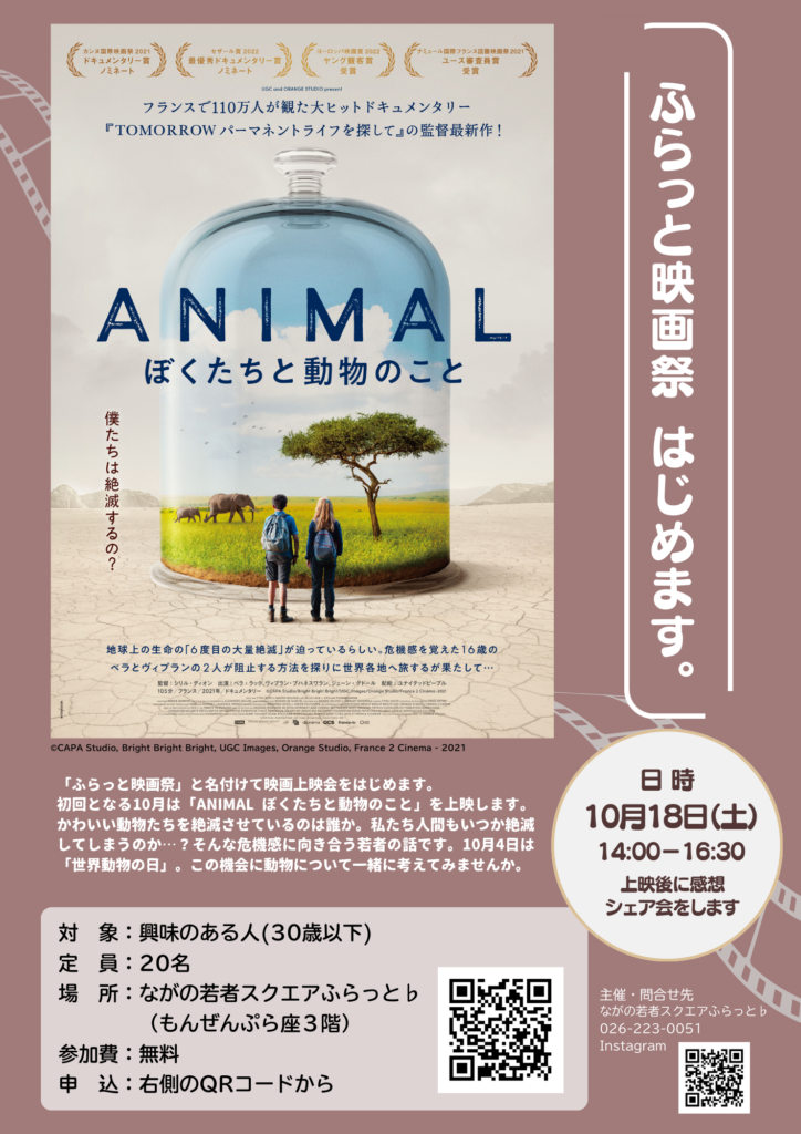 初開催の上映映画は「ANIMAL ぼくたちと動物のこと」