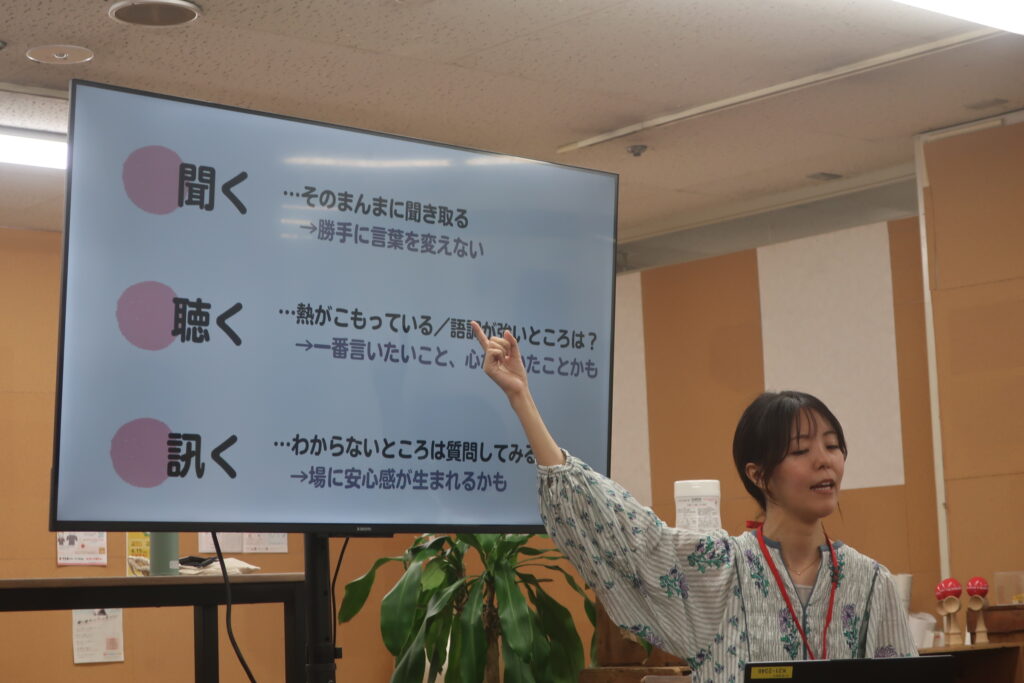 ただ話を聞くだけではなく、相手の背景や気持ち、ニーズに耳を傾ける姿勢を大切にしながら、ワークを通じて学び合いました。