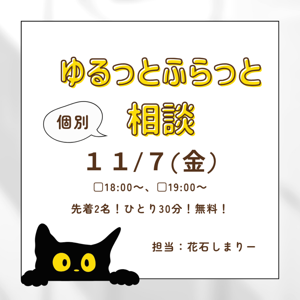 奇数月に開催している「ゆるっとふらっと個別相談」のお知らせです。