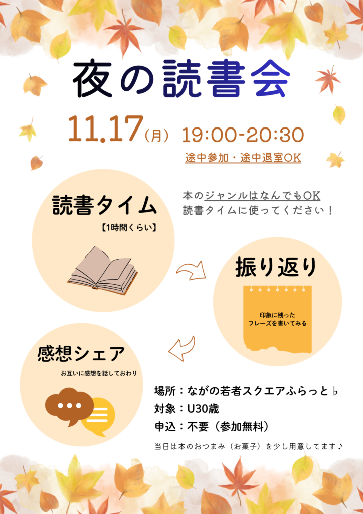 11月17日(月) 19:00~20:30に「夜の読書会」を開催します!