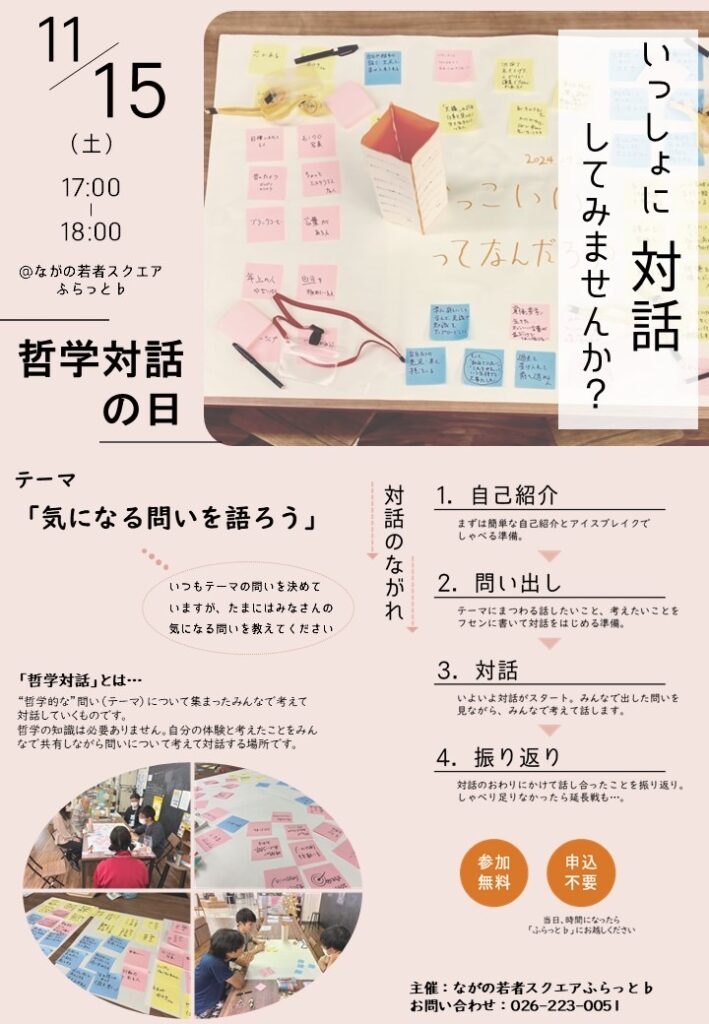 毎月恒例の哲学対話の日ですが、次回は11月15日(土)17:00-18:00です!