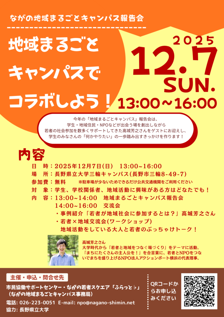 12月7日(日)ながの地域まるごとキャンパスの活動報告&交流会を開催します!