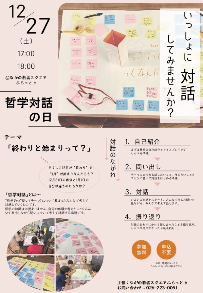 毎月恒例の哲学対話の日ですが、12月27日(土)17:00-18:00に開催します!