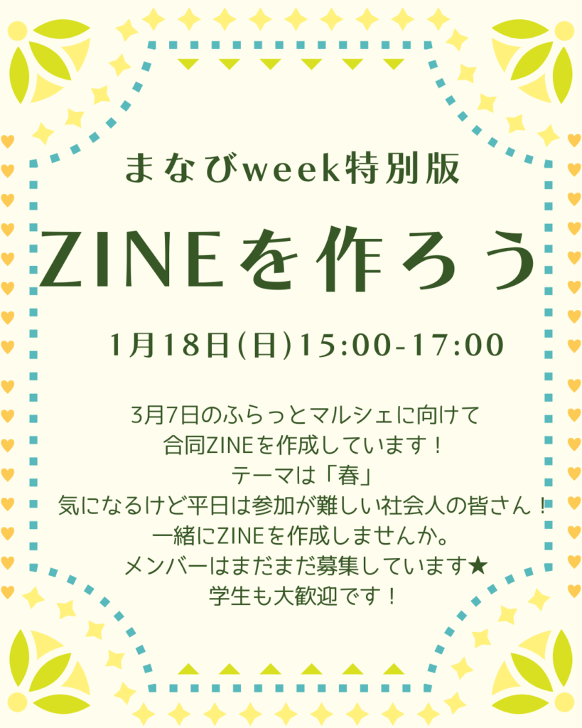 3月7日のふらっとマルシェに出展する合同制作のZINEを一緒に作ってもよし、