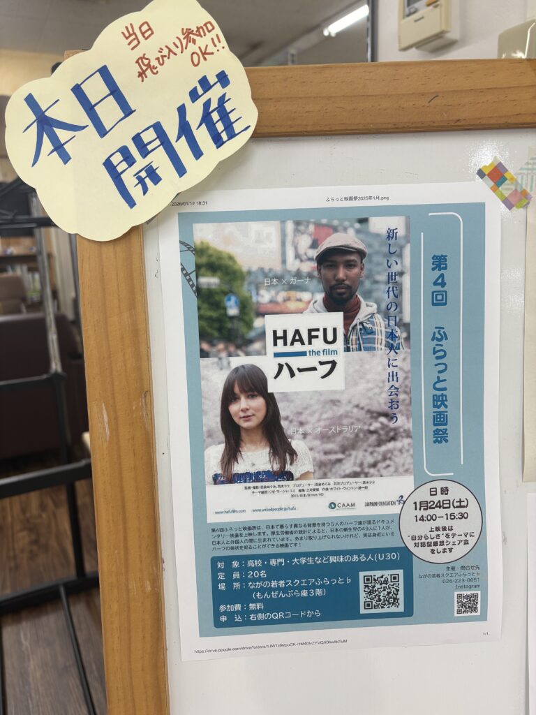 1月24日(土)にふらっと映画祭を開催しました。今回の映画は「HAFU(ハーフ)」でした。