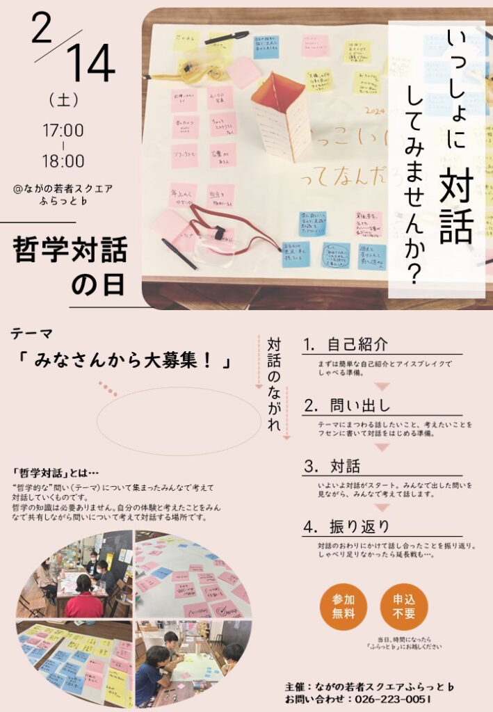 2月の哲学対話の日は、2月14日(土)17時~18時です!