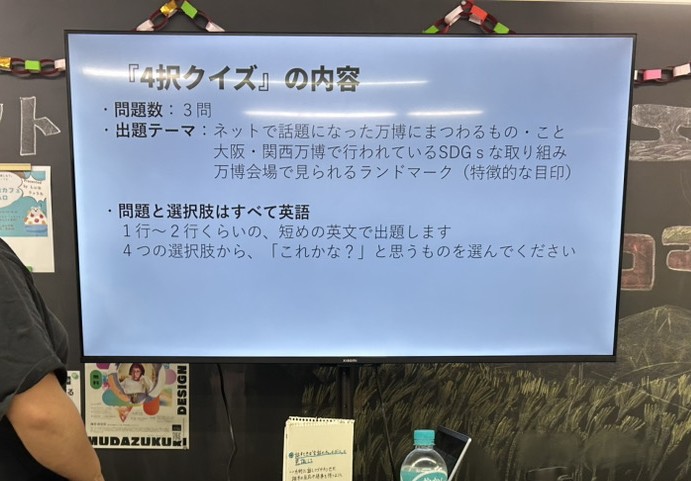 企画者のしいなさんが最近、大阪で開催されている万博に行ってきたそうで、各国のブースの様子や海外の文化を英語を交えながらクイズ形式で紹介しました!