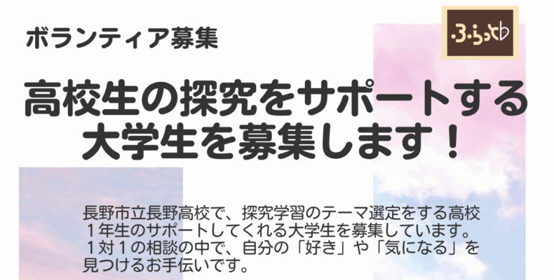 長野市立長野高校では、下記の日程で1年生が探求のテーマを考えます。その時に、一緒に考えたり、質問した…