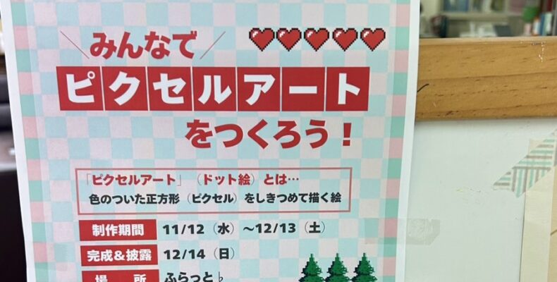 11/30(日)13:00〜15:00はふらっとでピクセルアート集中制作日を開催します! 制作期間が…