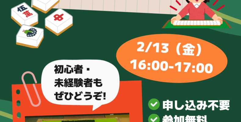 ふらっと♭初企画✨麻雀大会やります! 「興味はあるけどやったことがない」という人、大歓迎です。コミュ…
